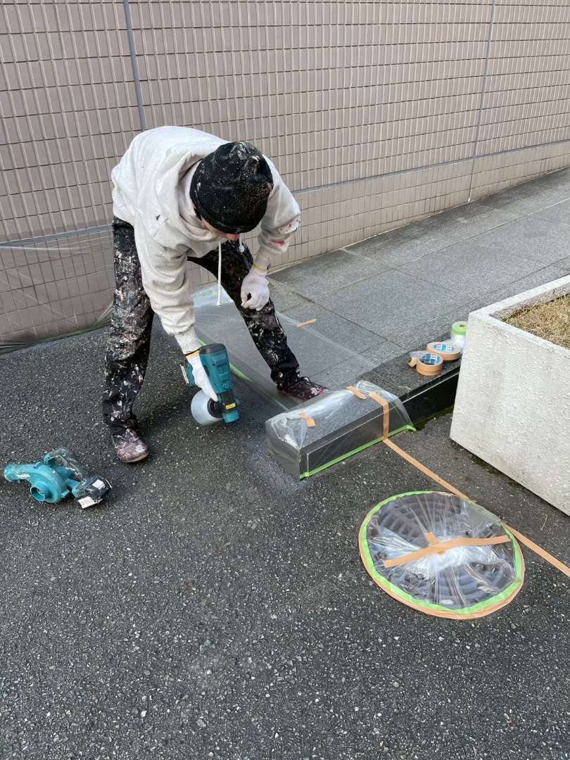 写真のように、職人が一つひとつの工程を丁寧に行うことで、仕上がりの均一性と耐久性を実現しています。ヤマセイ株式会社では、公共施設・商業施設・マンションなど、あらゆる施設の塗装工事へ対応しております。
