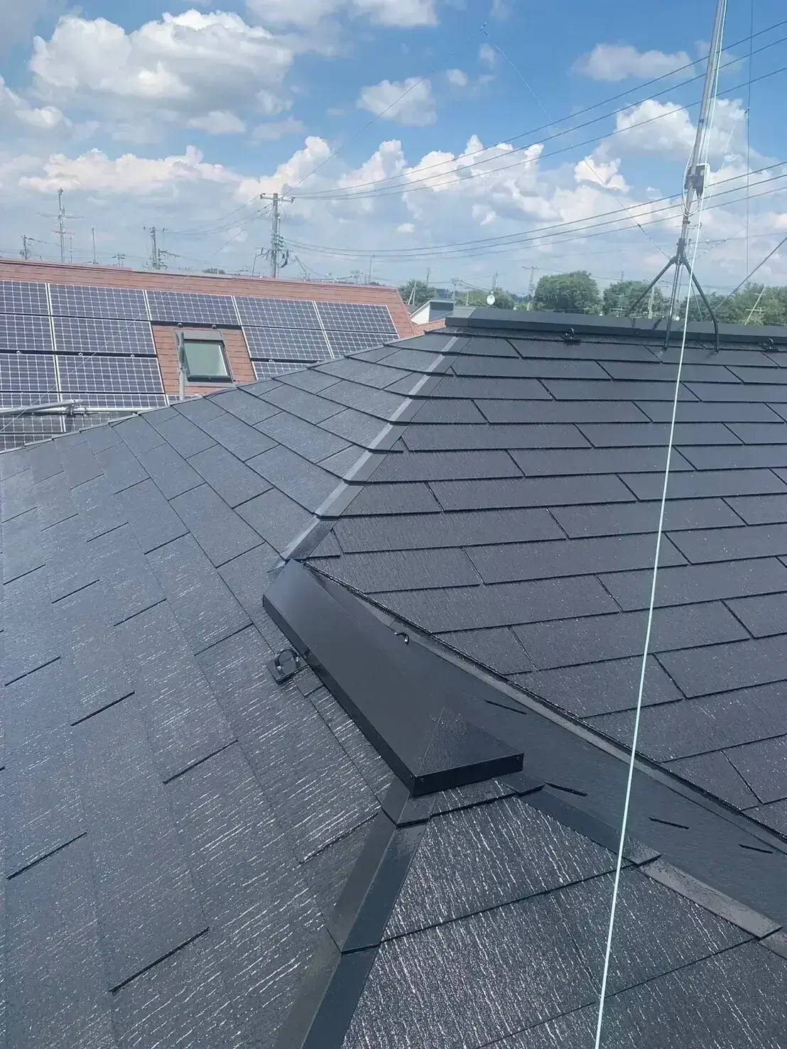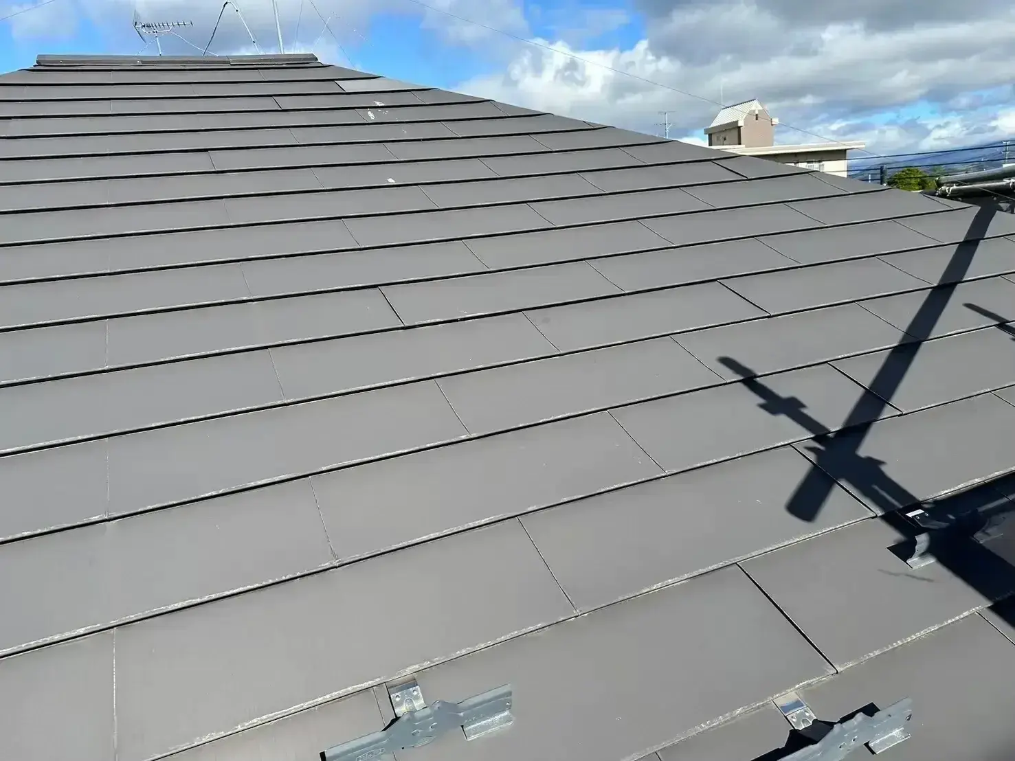 高耐候性塗料で仕上げたことで、屋根全体が均一な艶を取り戻し、紫外線や雨から守る防水性能も回復。外観も美しく生まれ変わり、建物の耐久性が大幅に向上しました。