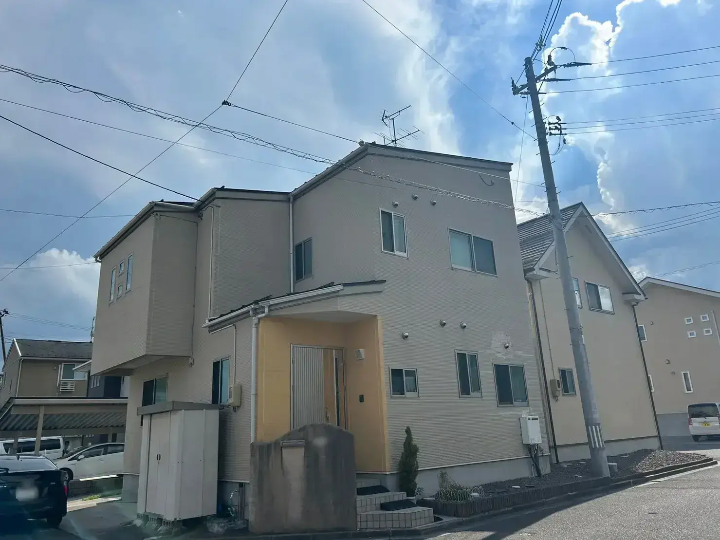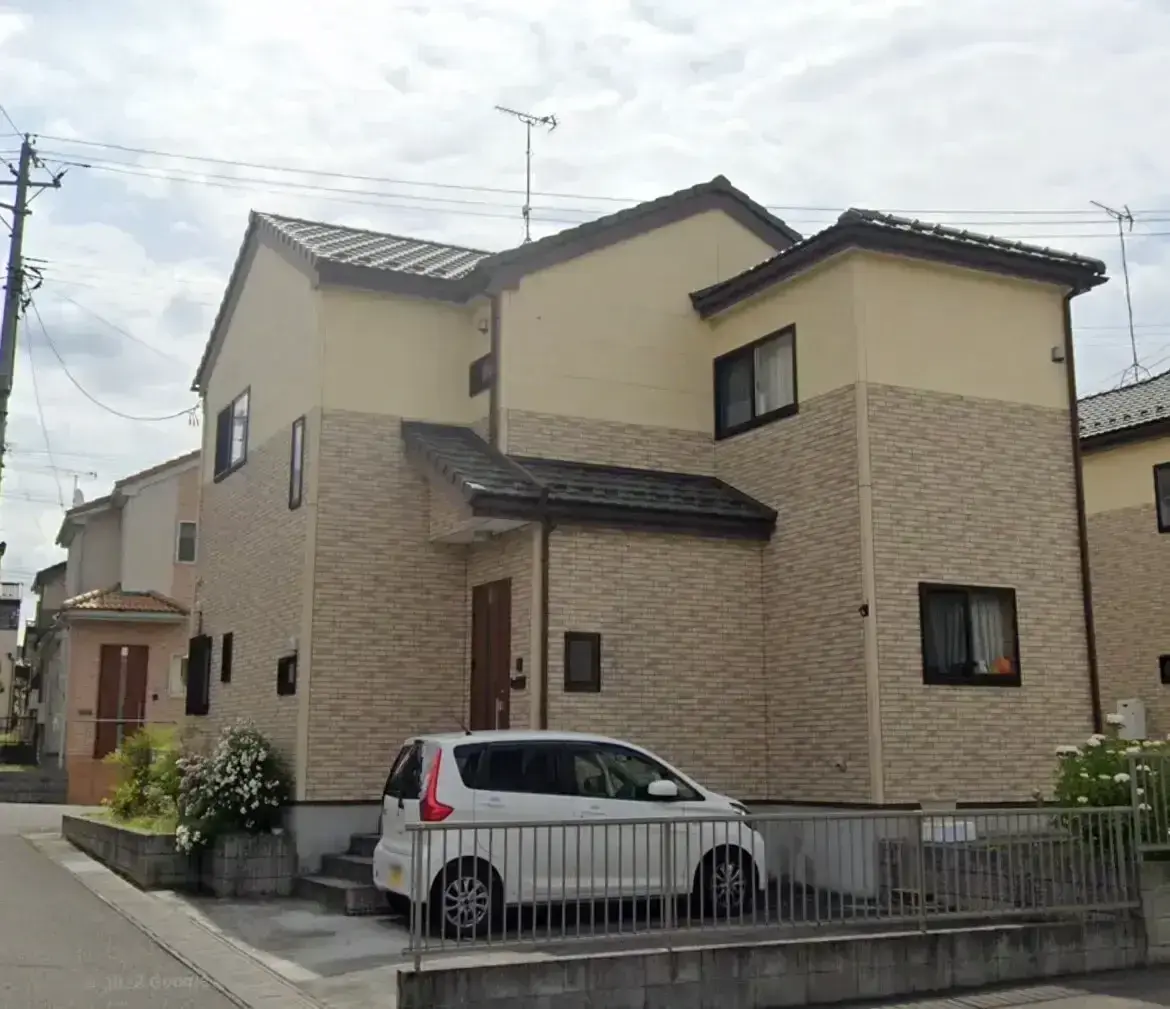 築年数の経過により、外壁全体のトーンがくすみ、特に目地やサッシまわりに汚れが見られる状態。意匠性のあるタイル調サイディングも色あせが進行し、防水性の低下が懸念されるタイミングでした。